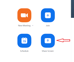 On your laptop, launch the Zoom application and login to your account in Zoom. From the Zoom application, click on the "Share Screen" Icon